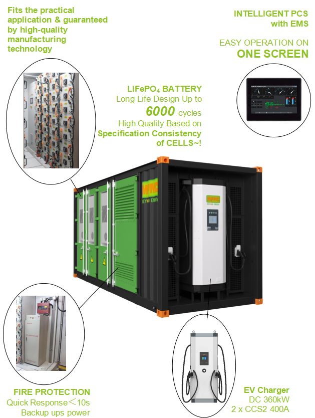 est une nouvelle gamme de système intégré sécurisé de stockage d'énergie par batterie et chargeur mobile pour véhicules électriques. Cette solution mobile et modulaire comprend des batteries, PCS, système de contrôle et chargeur VE ; CVC, protection contre l'incendie et composants auxiliaires. Il peut être connecté à l'alimentation du réseau, à un générateur CA et à une alimentation photovoltaïque externe (en option).