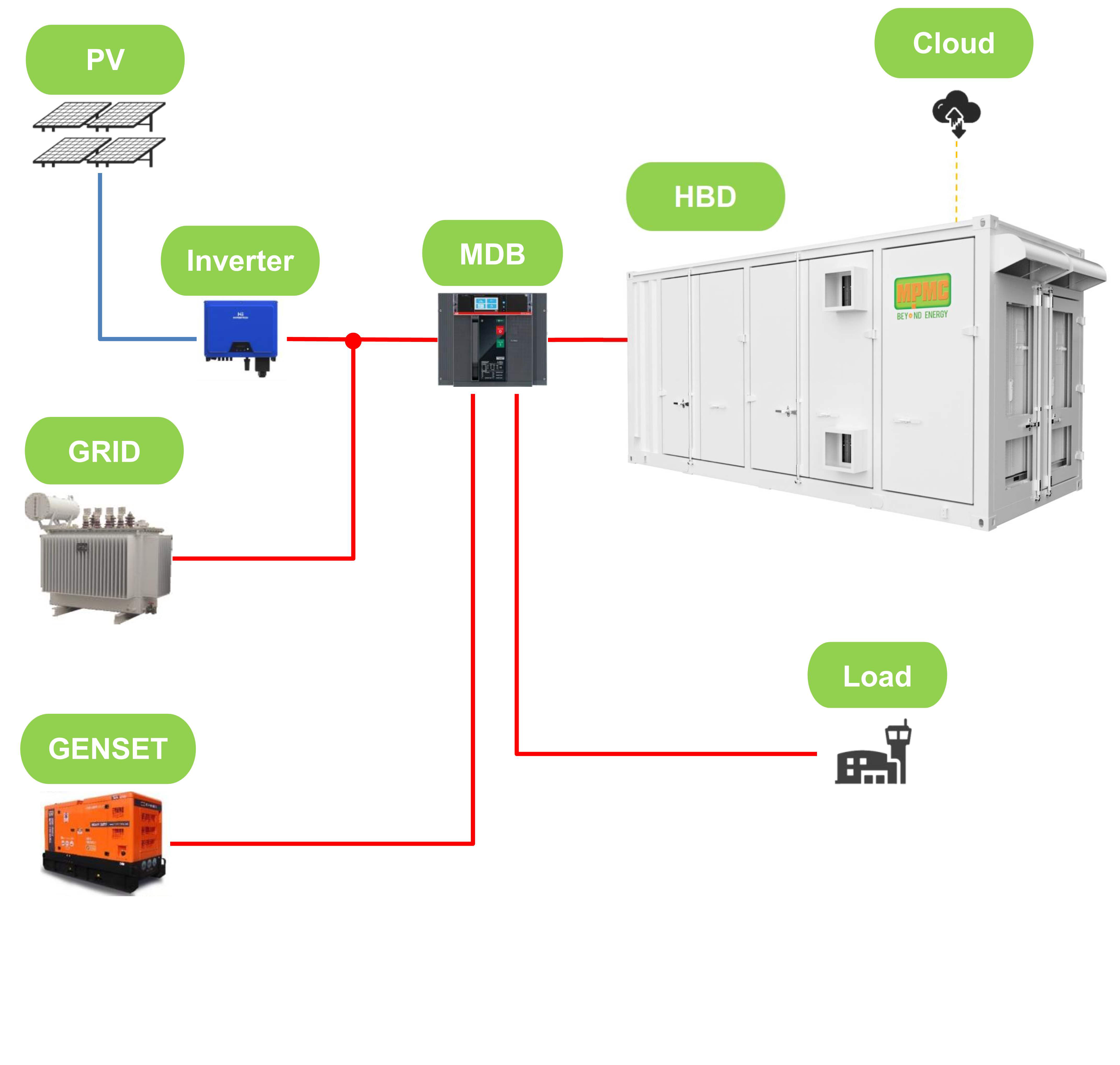 HBD® est une nouvelle gamme de système de stockage d'énergie par batterie intégré sécurisé. Cette solution fixe et modulaire comprend des batteries, PCS, HVLC, un système de protection contre les incendies et de contrôle; STS, onduleur solaire, ATS et des composants auxiliaires en option. La série A peut être connectée au réseau électrique et aider les utilisateurs à optimiser leur consommation d'énergie. HBD® est principalement développé pour une absence d'émissions et un faible niveau de bruit, réduire la dépendance au réseau, améliorer la qualité de l'alimentation électrique et garantir la consommation d'énergie de la charge d'urgence.