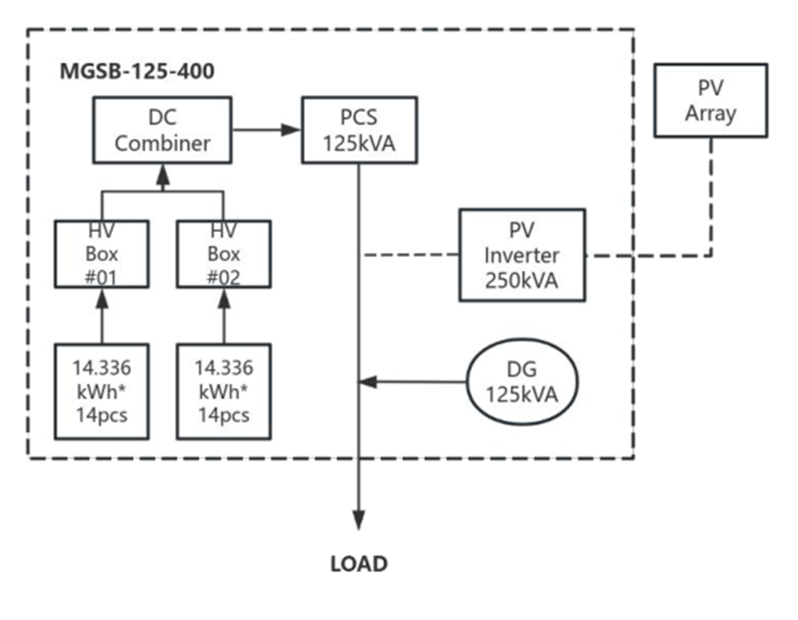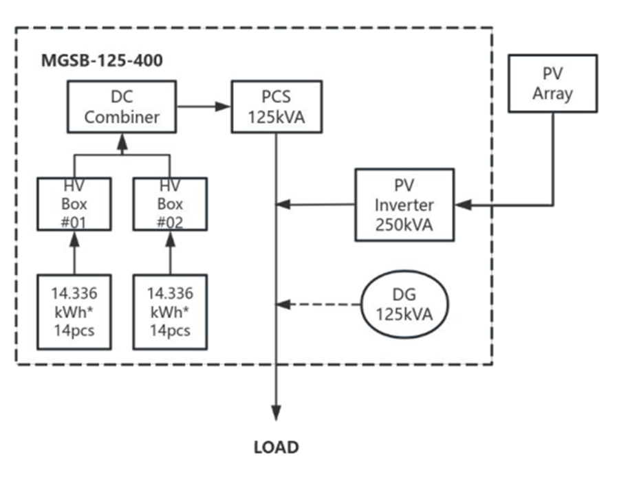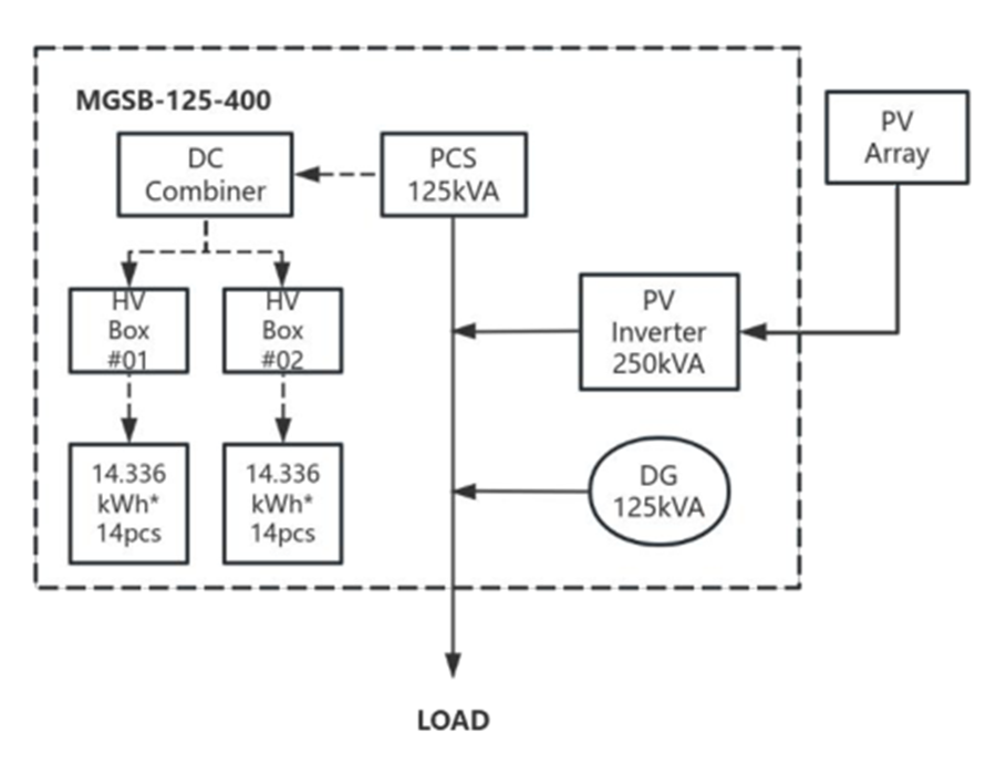 MGSB® est une nouvelle gamme de solution de micro-réseau hybride intégrée sécurisée. Avec générateur diesel, stockage par batterie et onduleur solaire dans une seule unité sécurisée.