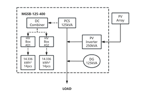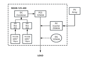 MGSB® est une nouvelle gamme de sécurité intégrée solution de micro-grille hybride. Avec générateur diesel, stockage de batterie et onduleur solaire dans une sécurité unité.