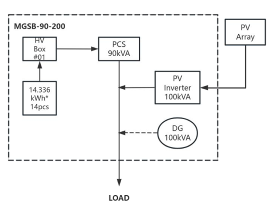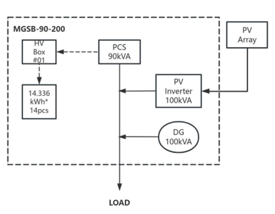 MGSB® est une nouvelle gamme de solution de micro-réseau hybride intégrée sécurisée. Avec générateur diesel, stockage par batterie et onduleur solaire dans une seule unité sécurisée.